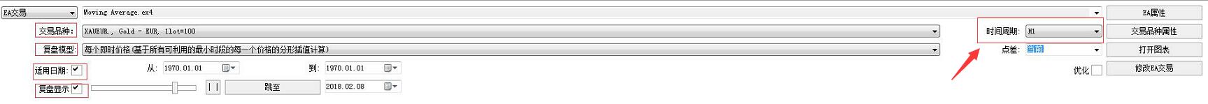2、弹出如图的框框,依次填好要复盘的相关数据,单击开始。(注意:不同的EA指标对交易品种和时间周期要求不同,要进行相应的设置) <图片单击放大>