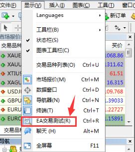 使用MT4时,想查看以前的行情,这里我们讲一下如何使用EA进行复盘操作。 首先,你的MT4里应该具备EA指标,没有的话,可以搜索我们之前的文章有加载EA指标的具体步骤。 有了基本工具之后,只需要一步步跟着来就行了: 1、点击“显示”---“EA交易测试”
