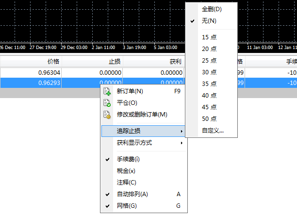注意:设置了追踪止损的单子只有在盈利的情况下才会执行。追踪止损只有在打开软件的情况下才会执行。如果你关闭了软件,那追踪止损就会停留在你关软件那刻所确定的止损价。也就是说追踪止损将失效