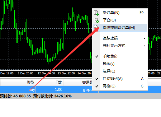 首先选择要平仓的订单,点击右键,在选择修改或删除订单。