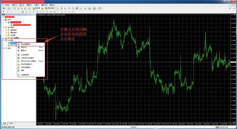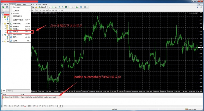 | MT4程序化交易EA加载流程: 1.解压缩MT4程序化交易EA,会看到两个文件夹,一个叫MQL4,另一个叫Templates。 2.双击打开MT4程序。 3.点击工具(T),点击选项(O),点击EA交易,以下所有的选项打勾。 4.点击文件,再点击打开数据文件夹。 5.复制之前的两个文件夹,MQL4和Templates,直接粘贴到数据文件夹中,并覆盖。 6.关闭数据文件夹,关闭MT4程序,并重启MT4程序。 7. 点击“显示”(Ctrl+V),点击“导航器” (Ctrl+N),在左侧导航窗口找到“EA交易”,点加号(展开) 。 8. 点击相应MT4程序化交易EA (任何一个已加载成功的指定EA脚本/程序) 。右键,点击“附加到图表” (Ctrl+A),点击确定, EA加载后在右上角会显示一个笑脸为加载成功。 9. 点击显示”(Ctrl+V),点击“终端” (Ctrl+T),并且在下方终端的日志中会显示加载成功(loaded successfully)。 MT4程序化交易EA加载流程图片介绍:点击下方图片放大大预览: |