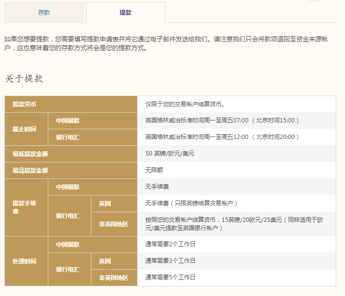 注意事项 1.提款金额到达您的收款银行帐户所需的时间会因银行而异。 2.请注意,英镑提款至英国银行帐户将经由BACS处理,处理时间需要3个工作日。提款加急需要支付额外费用(只适用于英镑结算交易帐户)。如果您需要更快的提款,请与我们联系。 3.任何在截止时间以后收到的提款申请表格,我们不保证能于当日处理,但是将会尽快完成。周六、周日及英国银行假期将不会处理任何申请。 请注意,您每天只能进行一次提款申请。 4.我们关注提款程序对您是否快捷便利。但是在某些情况下,我们在您提取资金到银行帐户之前,可能需要您提供额外的资料。因此您的提款要求可能会因为额外资料的审核工作而延迟一个工作日完成。这种情况下,您的提款将会在我们收到所需信息后再执行。 5.请确保所要求的信息是正确及有效的。否则,该交易有可能会被发卡服务供应商或银行拒绝、退回及/或延迟,并有可能被征收费用。我们一概不会为任何因受到拒绝、退回及/或延迟所产生的损失或损害承担任何责任。任何发卡服务供应商、您的银行、中介银行或本公司银行的收费都可能会从存款金额中扣除。 6.请注意,遵照反洗钱法规的指示,我们只能将存款返回至资金存入时的来源帐户。如果您的银行帐户信息有变动且您未曾使用过其他方式转帐给我们,请与我们的客服团队取得联系了解详情。 我们可能会要求您提供额外信息并为您注册一个新的转帐方式。 如有疑问,可以联系酷汇返佣网在线客服在线客服。 |