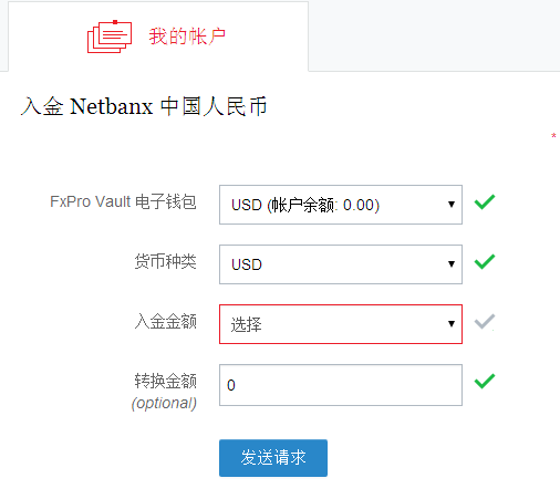 4.输入您想要入金的金额,之后点击“发送请求”即可(请注意,我们不接受第三方入金,您需要使用您自己的银行账户进行入金操作。)