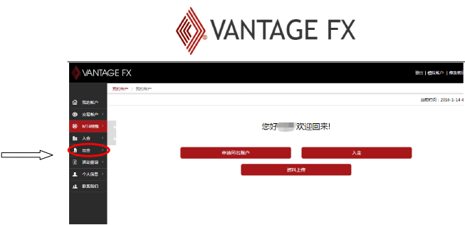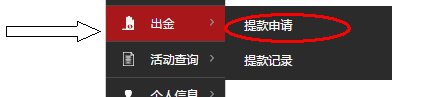 网页的左侧有一栏工具栏,出金点击左侧的出金,有提款申请,点击提款申请。 ![]()