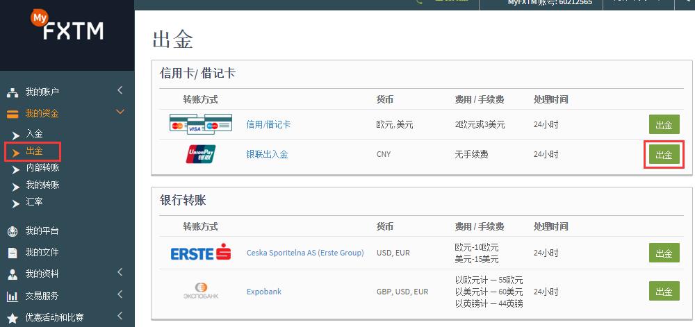 2. 所有银联取款必须发送回我们接受存款的同一个账户里。