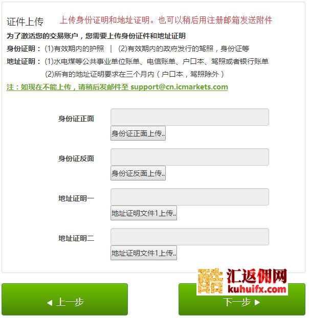 接下来就是证件上传了,身份证明和地址证明都要上传。