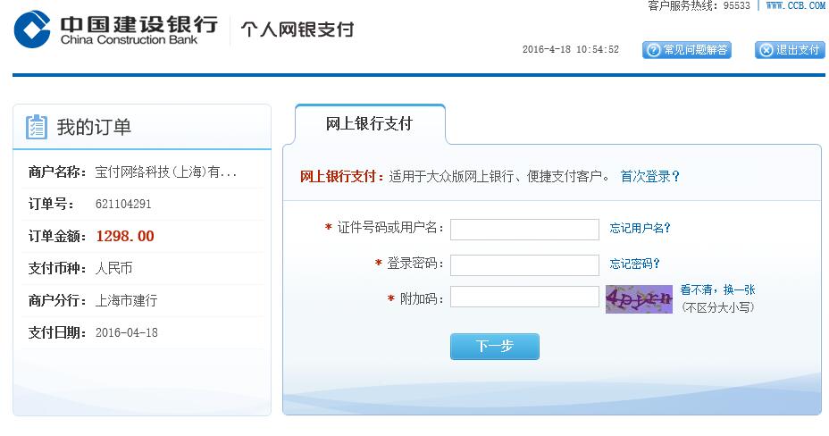 五、点击确定之后,将跳转到网上银行支付。