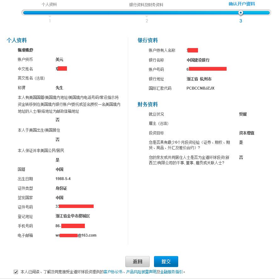 四、确认开户资料,并提交。