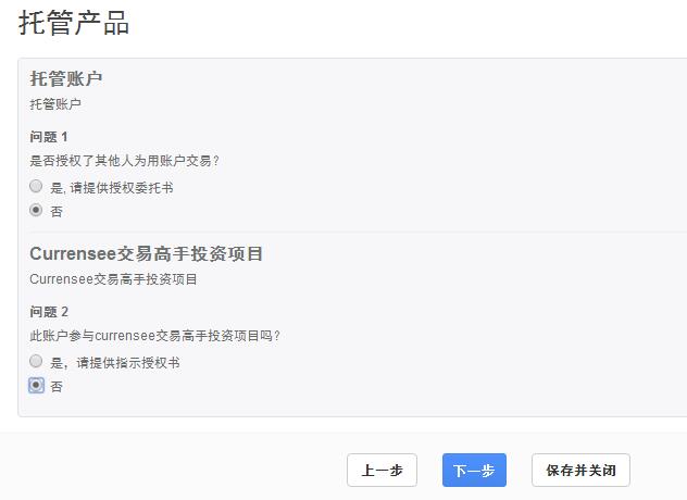 5、账号是否托管,全部选否。