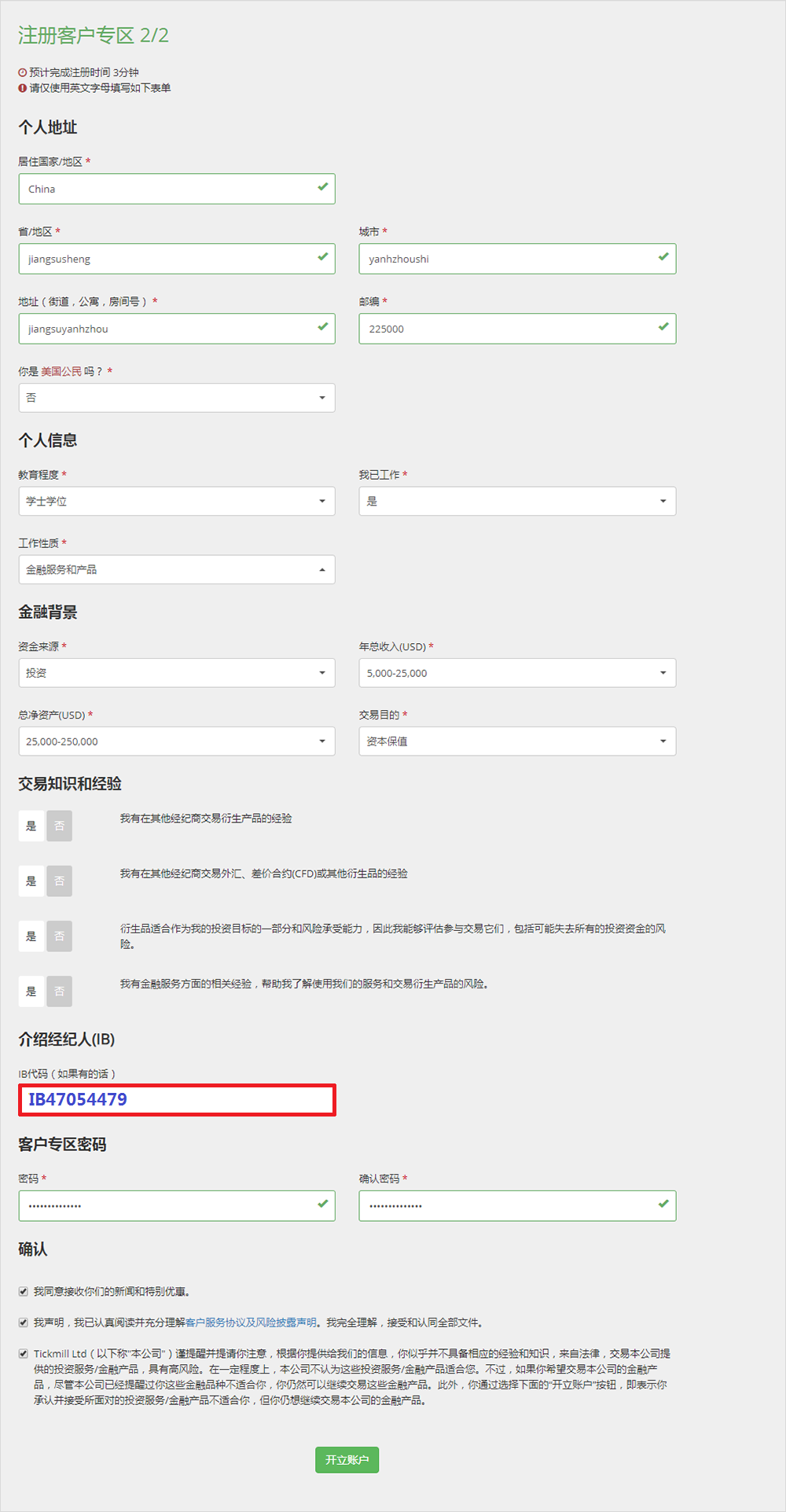 一、首先进入Tickmill官方,进行开户动作:https://secure.tickmill.net?utm_campaign=ib_link&utm_content=IB47054479&utm_medium=%E4%B8%93%E4%B8%9A%E8%B4%A6%E6%88%B7&utm_source=link&lp=https%3A%2F%2Fwww.tickmill.net%2Fcn%2Ftrading%2Fpro-account 如图一,点击“注册账户”(或者您可以联系酷汇返佣网,一对一教您:在线客服) 第一步