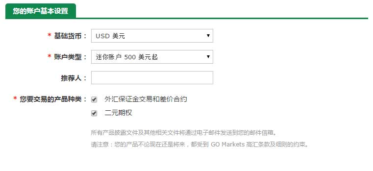 B:账户基本设置,选择账户“基本货币”和“账户类型”,推荐人不需要填写。