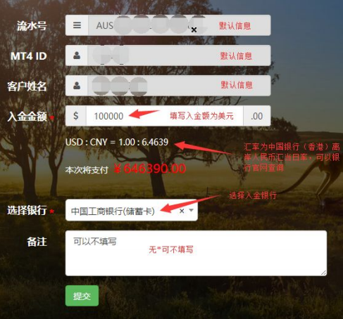 2:按照表格提示,正确填写账户信息,和入金金额。