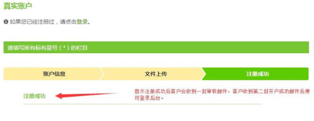 2:进入注册真实账户页面,填写相应注册信息并上传身份证和银行卡扫描件(带*号的为必填项目)