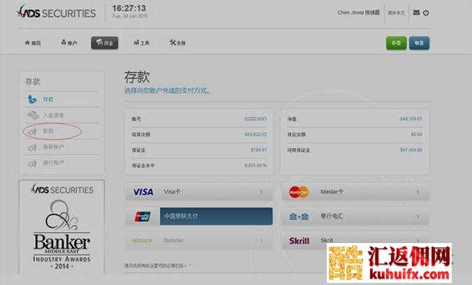 五、等待出金到帐,一般三个工作日左右即可到帐。至此ADS出金流程已全部结束,如您有其他疑问,您可以联系酷汇返佣网在线客服在线客服。