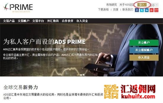 一、进入ADS达汇官方网站(点击进入),点击右上角的登入。