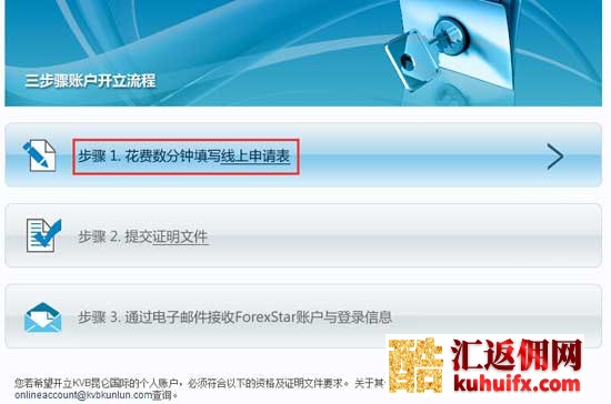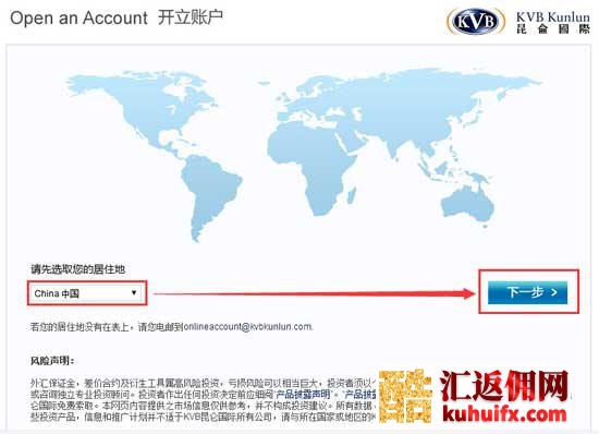 KVB昆仑国际是国内唯一具有国企背景的外汇交易平台(中国最大券商中信证券控股60%),支持银联,电汇出入金。 KVB开户流程比较长,按照以下图文步骤进行即可: 一、进入KVB官网开户页面(点击进入):
