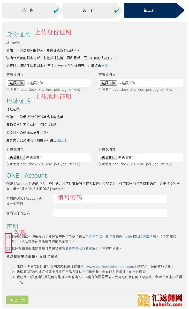 四、上传身份证明及地址证明,并设置个人密码。