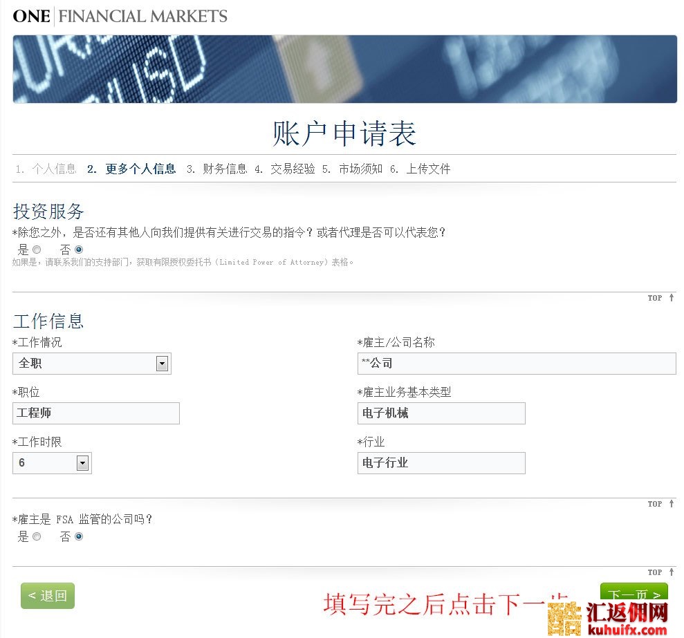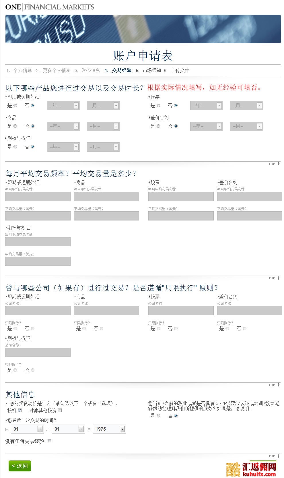 填写完之后点击下一步。 五、填写交易经验: 根据实际情况进行填写,如无交易经验,可填否。 投资动机务必选择一项。