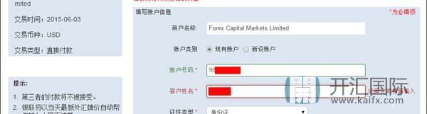 二、进入到银联入金通道,填写基本信息,注意姓名一定要填写拼音的,并且一定不能第三方入金,就是持卡人名字必须是和要入金的MT4帐号人的名字是要一致的。 填写好入金金额(这个金额是美元单位,入金时会按照当前汇率自动换算)。勾选“协议”点击“支付”。 三、点击“支付”以后,会讲您的入金金额和换算成人民币金额显示出来,让您确认。