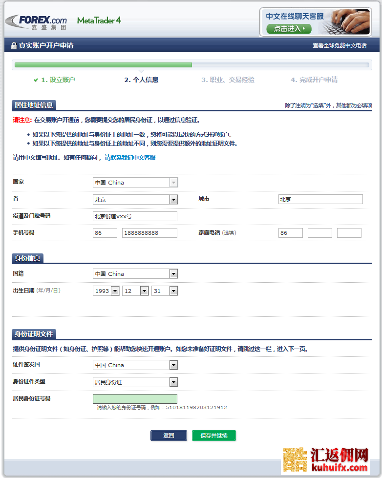 第二步:填写完基本信息之后,按照提示填写“个人信息”(地址填写与身份证地址一直,否则需要地址证明)