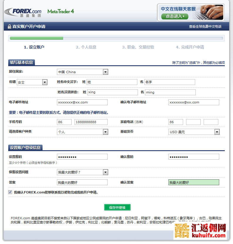 第一步:点击嘉盛开户链接:开户链接>> 进入嘉盛官网开户界面(如下图),按照提示填写信息。