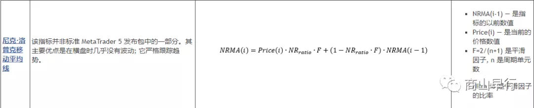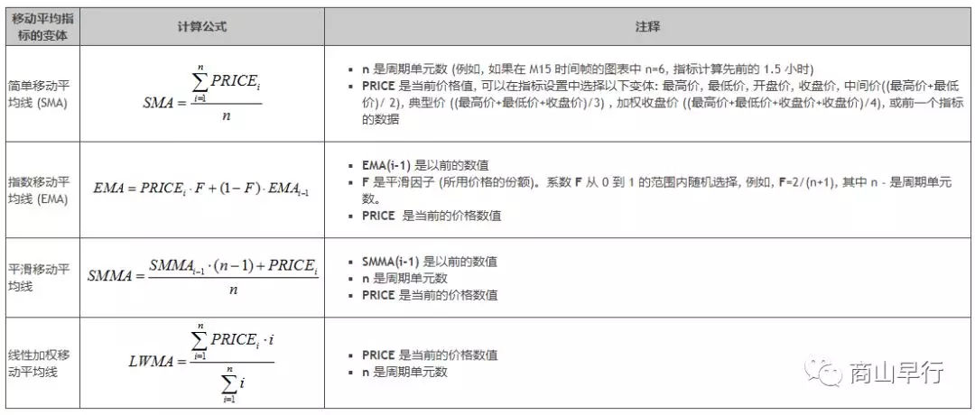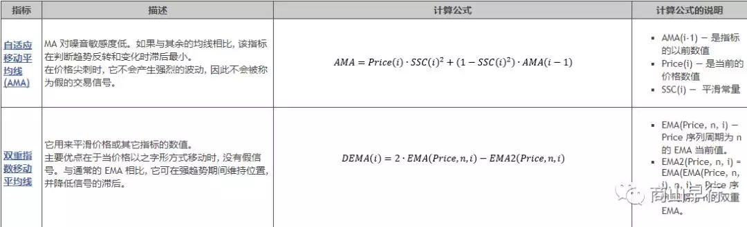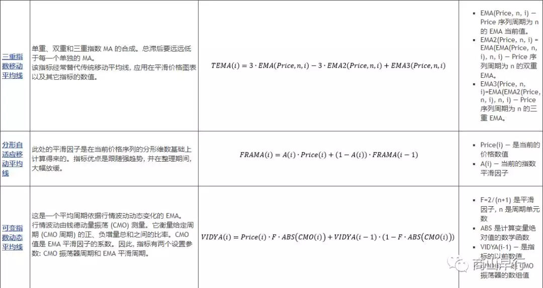 以下, 我们给出移动平均指标的每个变体的计算公式: