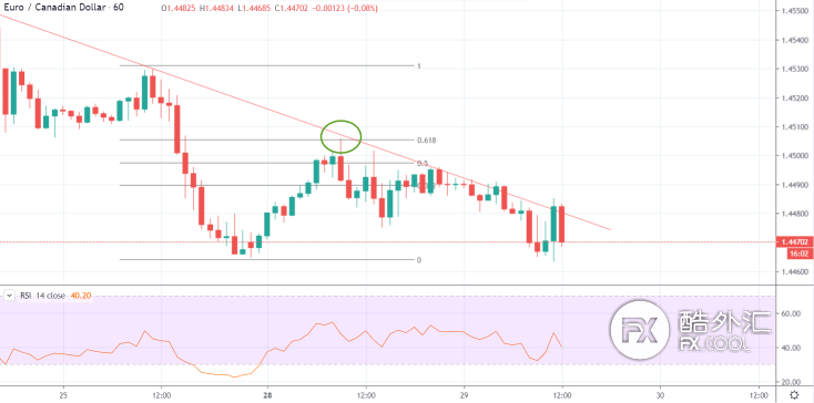EUR/CAD货币对达到下降趋势线的水平与0.618斐波那契水平一致。这是一个双重确认,即通过在趋势线上方放置止损,入场做空。 2)蜡烛图 蜡烛图也是基于趋势线确认交易信号的流行的工具。强烈的看涨或看跌蜡烛形态——如吞没形态、实体线形态或反转晨昏星形态,都可以用来确认交易信号。 3)技术指标 振荡指标的超买和超卖水平,以及围绕趋势线形成的看跌分离和看涨分离,往往都证实了高概率的交易信号。 交易虚假突破时,所有提到的工具都可用来确认交易信号。
