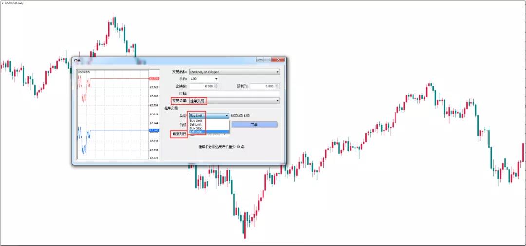 Buy limit限价买入:在现价之下的某一点位设置买单,比如原油价格现价是51美元,你认为等价格跌到50美元时就可进场做多,那你可以选择限价50美元买入; Sell limit限价卖出:在现价之上的某一点位设置卖单,如油价现价是49美元,你认为当价格上涨到50美元时可以做空,此时可选择限价卖出; Buy stop止损买入:在现价之上的某一点位设置买单,当油价现价为49美元,你认为如果上涨到50美元之后就可做多,你可以在50美元止损买入; sell stop止损卖出:在现价之下的某一点位设置卖单,当油价现价为50美元,你认为下跌到49美元之后可以做空,那就在49美元止损卖出。 什么时候适合挂单交易? 1,当你看好在某一价格进行做多/空,但你可能因为其他事情无法分身盯盘,为了不错过交易机会,你可以选择挂单交易; 2,如果你看好某一刻的一波行情,但是担心行情到来时市场交投密集会导致系统无法按你的价格及时成交,甚至是你担心在快速波动的行情中反应不过来,这个时候你可以提前进行挂单布局; 3,有些交易者在行情到来之前会对行情做出进场预判,但当价格到达预判点位时却总是因为种种原因害怕进场,经常一等再等因此错过交易时机。这时你可以提前进行挂单设置,让系统来帮你控制情绪。 挂单交易技巧 至于在什么情况下可以进行挂单,比如破位交易,顺势交易,强支撑阻力区间交易,这属于技术分析,并不是挂单交易手法中应该讨论的范畴,我们主要跟大家分享几个挂单中应该掌握的技巧。