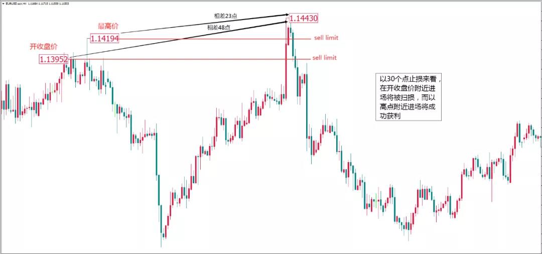 1,在stop挂单中止损的合理设置。如果是你市价交易,正常情况下应该是当价格破位之后再等待回抽确认之后入场,如此你将会知道测试之后的真正有效止损点,而挂单交易缺少确认过程。如下图欧元兑美元走势,价格在下破颈线之后,市价交易下,下一根反抽阳K线测试之后,你可能直接将止损设置于阳线高点上方即可,但如果是sell stop挂单入场,如果你只单纯地把止损设置在颈线上方一点点的话,在第二根反抽K线中可能遗憾扫损出局,所以正确的止损点应该在破位之前的挣扎高点上方。 2,挂单点位应尽可能接近阻力/支撑最佳点位。当交易者发现一个强大的阻力/支撑,很多交易者往往会害怕无法成交而将挂单点位提前,很多行情未必总是乖乖地如期在相应的地方受阻/支撑,它们经常会有短期超涨/跌的情况,而挂单点位的提前意味着交易者的止损不可能有太大超幅设置的空间。 如下图欧元兑美元在上测前期阻力的过程中出现短期超涨,如果交易者选择提前在开收盘价的明显阻力中挂单,如果以30个点位止损,那交易者将在这次挂单中不赚反亏,但如果选择在更接近高点的位置入场,那30个点止损已经够用,记住,这只是为了在不扩大止损空间的情况下尽可能地赢取成功的机会。如果成功就是惊喜,如果未有成交最多是遗憾,但如果不赚反亏那一定是痛苦,这种痛苦比你看错行情要更加严重。