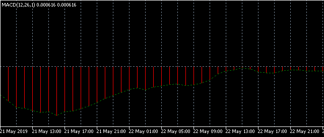 CD也是技术指标的一种。MACD称为指数平滑异同平均线,是从双指数移动平均线发展而来的,由快的指数移动平均线(EMA)减去慢的指数移动平均线。但是一般我们在MT5中直接在点击添加的都是单线MACD,如下图所示: