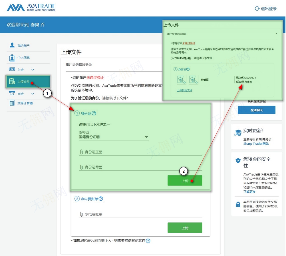 第四步:上传身份证明文件。上传身份证件,收到验证邮件。 上传身份证正反面。