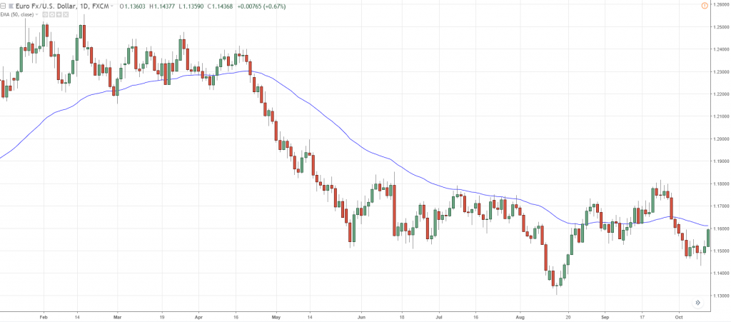 在强劲上升趋势中,应用原理一样。 平衡趋势 平衡趋势往往遵循50MA,并且跟强劲趋势不同的是,平衡趋势中市场价格在50MA附近有清晰的回调行为。所以我们可以在50MA附近寻找进场机会。