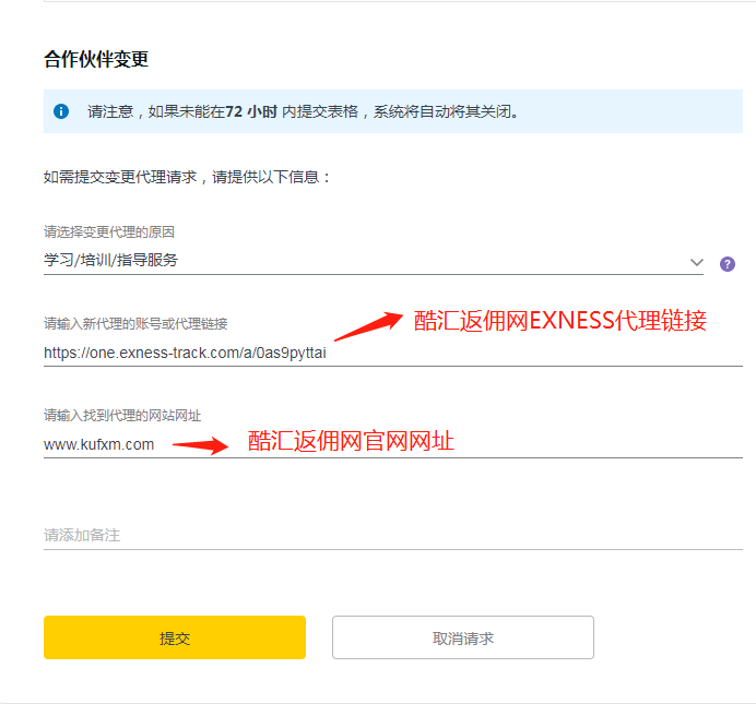 已经有EXNESS交易账户,但是想获得酷汇返佣网的服务,应该怎么样做? 方法一:联系官方客服 联系在线客服,要求把账号转移到代理0as9pyttai(代理连接:https://www.exmarkets.guide/a/0as9pyttai)名下,然后按照客服的步骤操作。收到转代理完成的邮件以后(一般3天左右),登入客户专区建立新的交易账号,把资金内转过新的交易账号交易就可以。 方法二:换一个邮箱重新开户 推荐! 2. 也可以换一个邮箱重新开户,其他所有的都不用更换,只需要一个邮箱,重新注册即可。 附加账户申请:方法一转户完成以后,接下来需要做的 2.打开酷汇返佣网的exness代理链接:https://www.exmarkets.guide/a/0as9pyttai 我们代理ID:0as9pyttai 3.打开的网页内,点击右上角的“登录”登录进入exness客户后台。