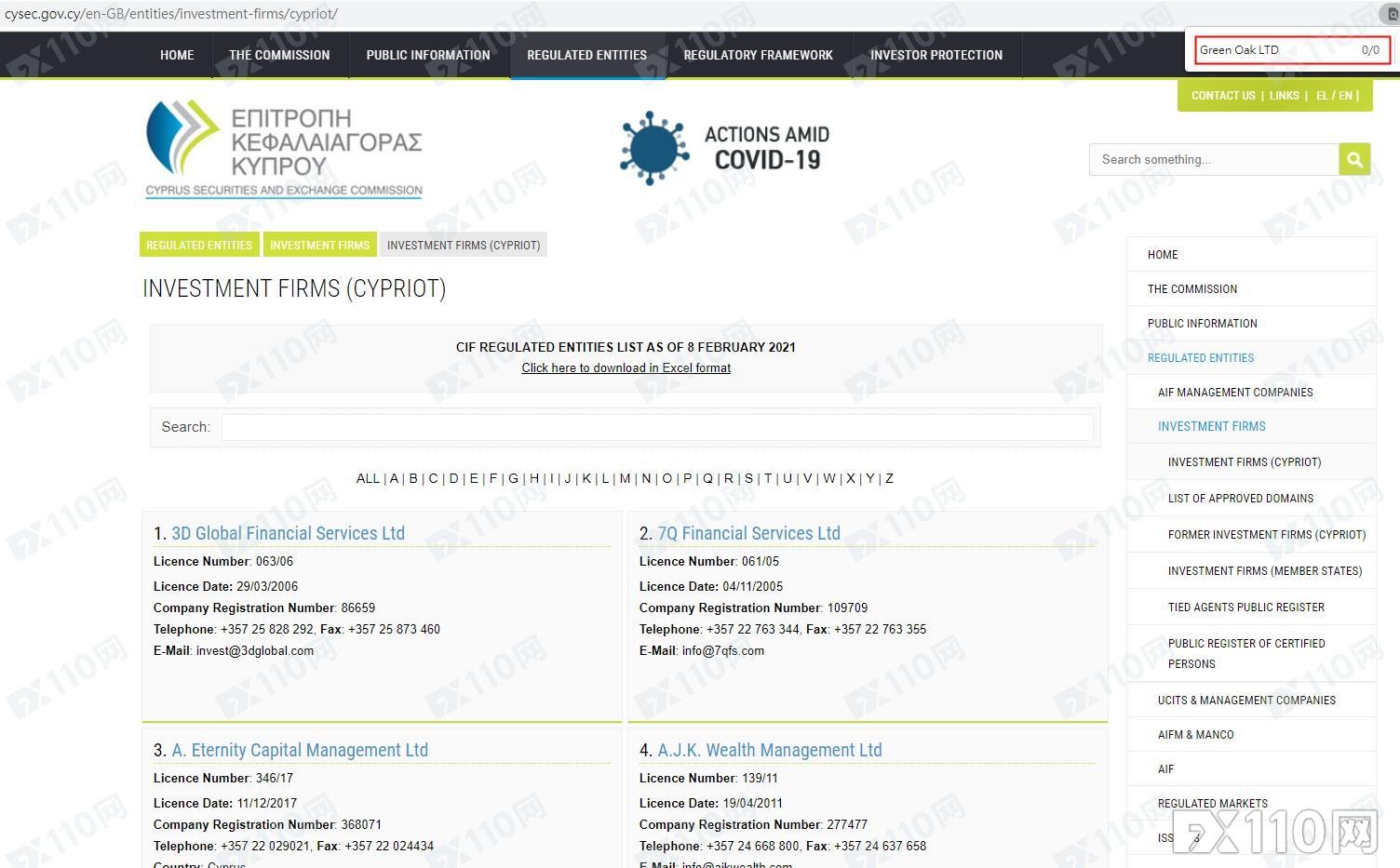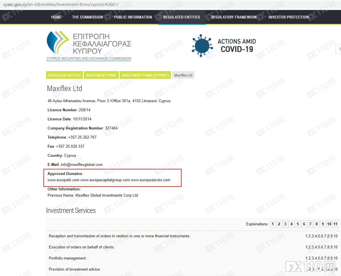 FX110调查 与早前崩盘的特大传销平台PTFX名称如此相似的OTPFX究竟是什么来头?结合相关域名资料,FX110调查到,该平台宣称由Green Oak LTD运营,公司注册于塞浦路斯,受塞浦路斯CySEC 258/14监管,并提供货币对交易服务。 我们在塞浦路斯CySEC输入Green Oak LTD却查无资料,使用证号:258/14,查询到对应公司名称为:Maxiflex Ltd,且不仅名字天差地别,登记网址亦与OTPFX平台宣称的网址不一致,显然OTPFX为套牌监管平台!