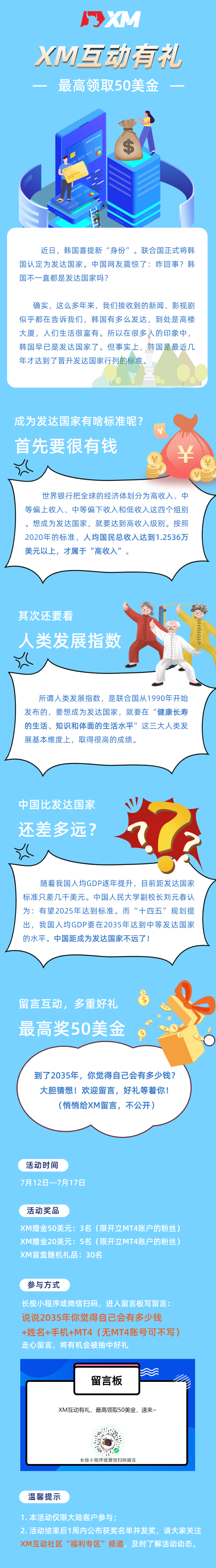 微信扫一扫海报最下方的程序码,参与XM互动留言,最高领取$50赠金,速来~