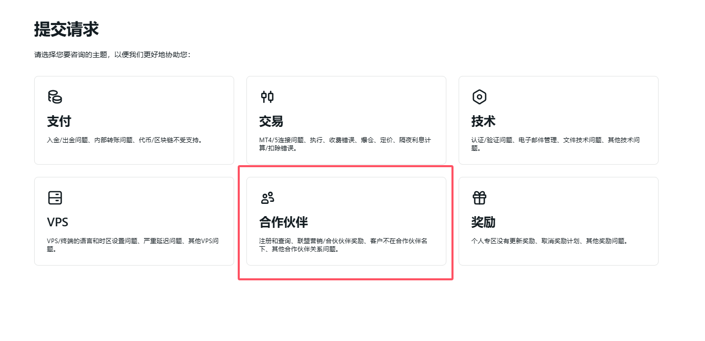 | 最近的一段时间内,部分exness用户反馈右下角的客服窗口消失,实际是因为客服功能是由客服服务器加载,而客服服务器被屏蔽导致的. 遇到这种情况如何解决,参考下面图片,选择在客服中心提交请求,如果您找不到聊天窗口,可以试试这个办法. 此处还可以更改代理,只需要点击提交请求 然后点击合作伙伴,选择其他,在输入框中输入我要转到代理链接:https://www.extrade.trade/a/0as9pyttai 合作伙伴代码:0as9pyttai下,然后等待2-3天时间即可.如果还有其他疑问,请点击本网站的联系我们进行咨 |