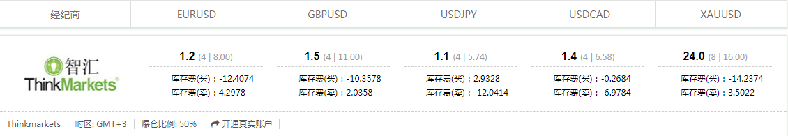 ThinkMarkets智汇点差EUR/USD:1.0点, AUD/USD:1.0点, XAU/USD:2.5点。 详情如下:(点击查看更多平台实时点差)