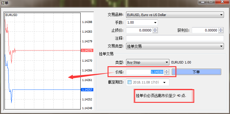 挂单中的Buy Stop就是买入止损,在当前价格上方挂买单。