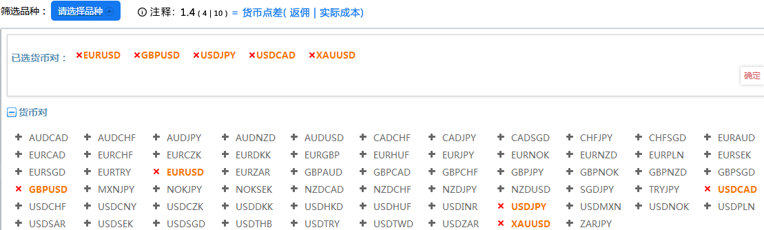 如果还想了解更多交易品种的点差,可以在上方选取。