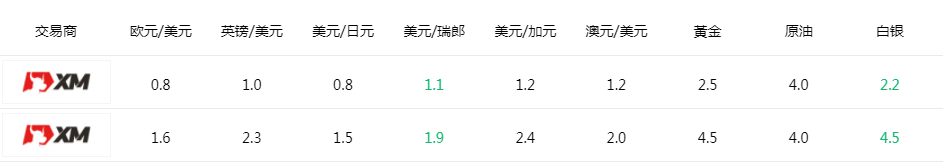 XM平台的点差是浮动变化的,不是固定的。详情如下: