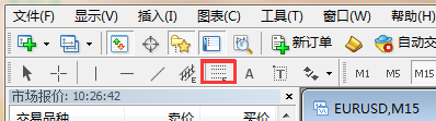 首先、打开MT4软件在上方找到“斐波那契回调线”