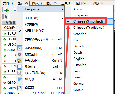 当MT4软件上显示的不是中文时,我们应该怎么办才能把他显示的语言文字改成中文呢?