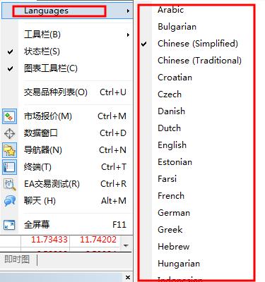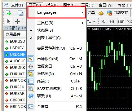 首先打开MT4在最左上方的显示一栏里,找到languages。