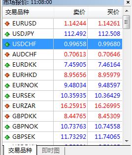 首先在MT4上左侧市场报价那里,选择想要查看的交易品种。