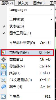 如果没有市场报价这一栏,就在MT4上方显示一栏里调出市场报价。