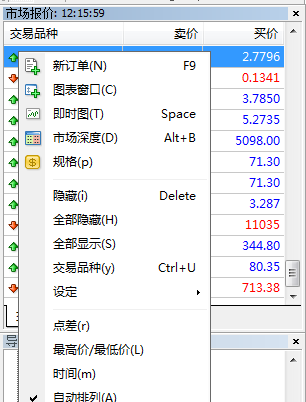 在市场报价那里点击右键:“全部隐藏”,然后在点击“全部显示”,这样就会显示出来了。