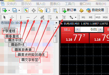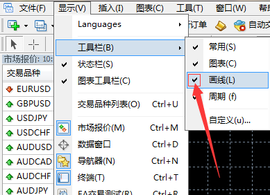 1、首先点击左上角“显示”下面“工具栏”里的“画线”确认勾选好。
