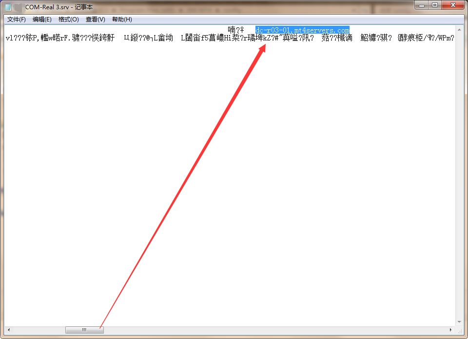4、进去后会看到一串乱码,只要找到字母或者数字,那就是服务器的地址。(不要把格式设置成自动换行,不然乱码推在一起,眼花找不到)