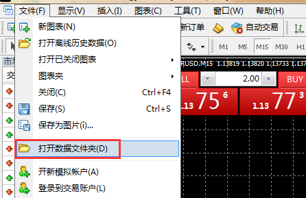 第二种方法: 1、打开MT4左上角“文件”下的数据文件夹。