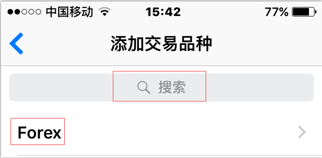 2、点击右上角的符号后,会出现到添加交易品种页面,可自己搜索或者点击“Forex”